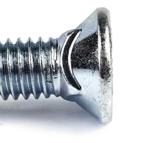1/2"-13 Zinc plated steel plow bolts have a non-protruding #3 flat head and the shank is topped by a short countersunk square section under the head.