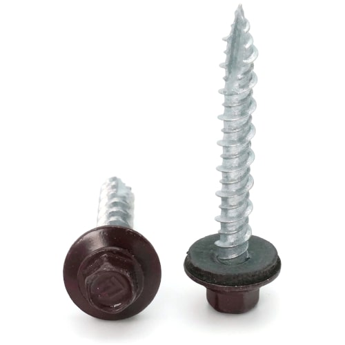 Roofing Screws, Fastgrip™ Hi-Lo Thread, Type 17 Point, Burgundy, #10 x 1"