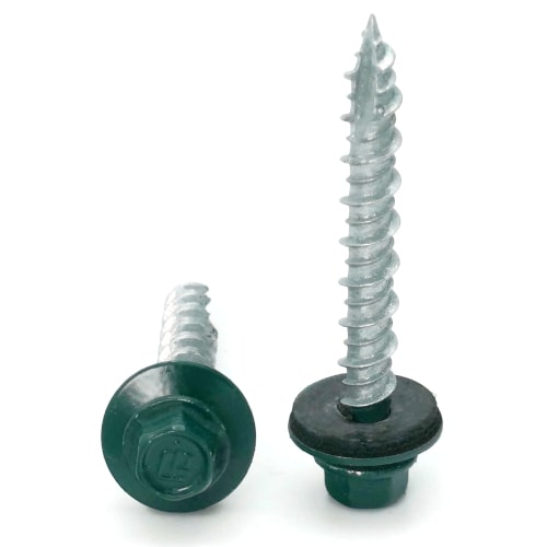 Roofing Screws, Fastgrip™ Hi-Lo Thread, Type 17 Point, Forest Green, #10 x 1"