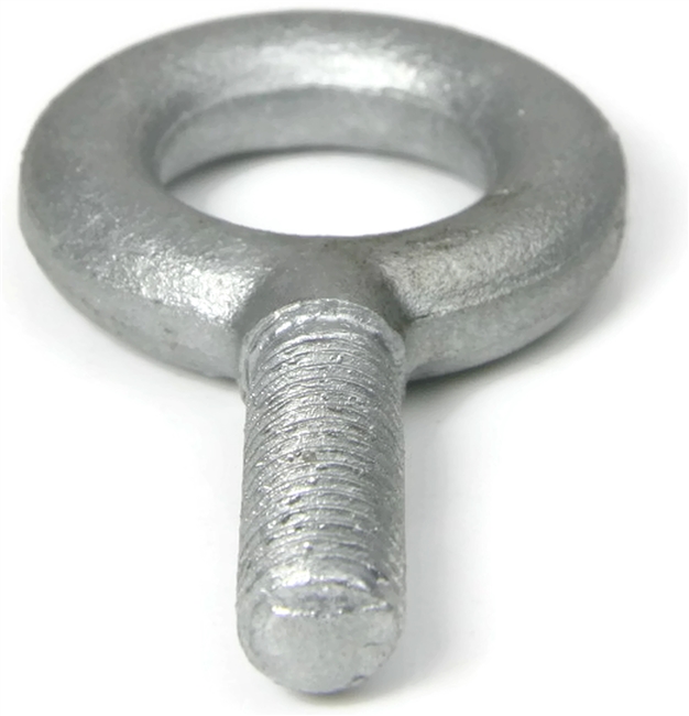 A 2"-4.5 Hot Dip Galvanized Plain Pattern Eye Bolt is a threaded rod with a ring for a head. This ring is used to hold a hanging fitting or a load, commonly seen in industrial applications.