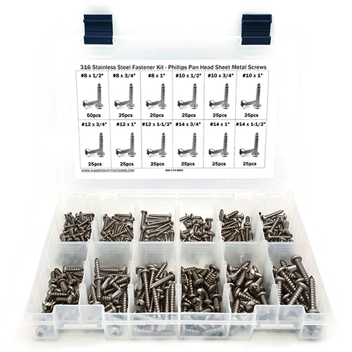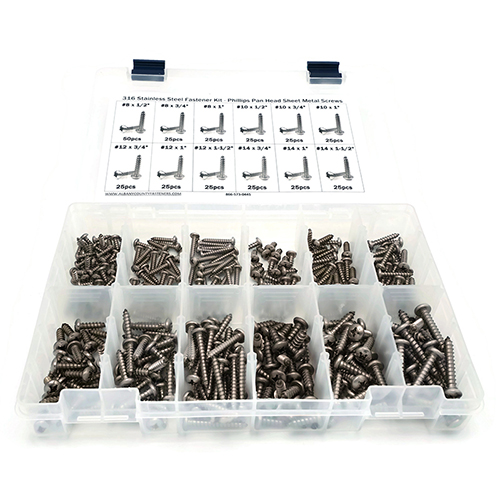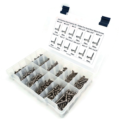 326 piece 316 Stainless Steel Phillips Pan Head Sheet Metal Screw Kit Easy Reorder Sheet
