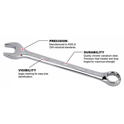 The 4 Piece Combination Wrench Set contains 4 larger wrenches made to work as hard as you do.