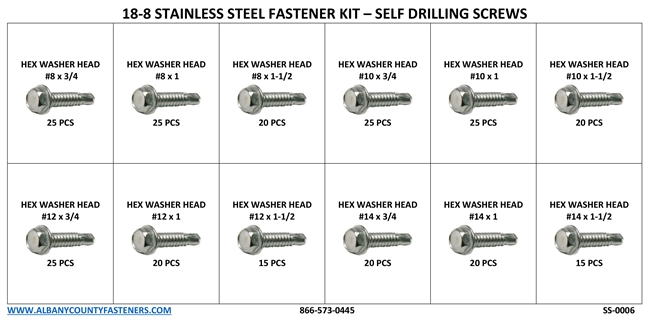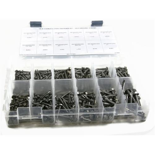 256 Piece Stainless Steel Hex Washer Head Self Driller Screw Kit Easy Reorder Sheet