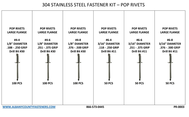 451 Piece Stainless Steel Large Flange Pop Rivet Kit Easy Reorder Sheet