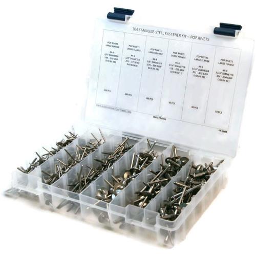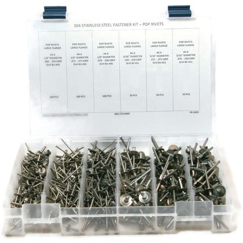 Kit Assortment, Pop Rivets, Large Flange Size #4-2 through #6-8, 304 Stainless Steel, 451 Pieces