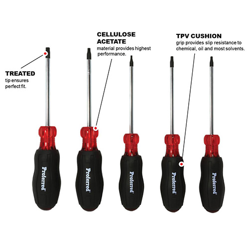 The 5 Piece Torx Screwdriver Set is a high performance, durable screwdriver set ready to work as hard as you are.