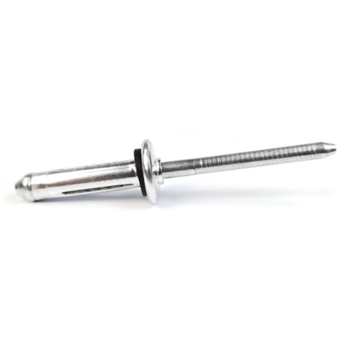 Tri-Bulb Rivets expand in three directions as the mandrel is pulled through them, creating three anchor points on the blind end of the application. They have better retention than a standard pop rivet due to their increased surface area. These rivets also work better in thinner metals without causing damage to the materials. Aluminum Tri-Fold Rivets are used for their high strength to weight ratio, and corrosion resistance.