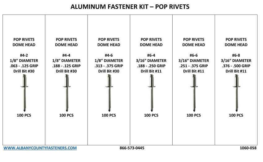 Aluminum Pop Rivet Size Run - #4-2 through #6-8