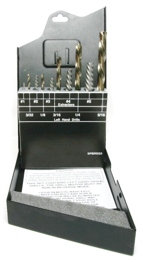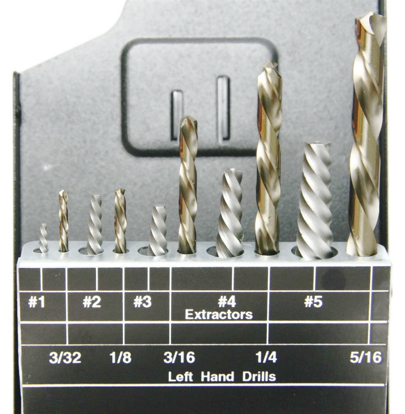 Builders, mechanics, hobbyists...everyone needs a bolt extractor set! Made in the USA by Norseman CTD (Viking), this 10 Piece Bolt Extractor Left Hand Drill Set is high quality and convenient. Using the left hand drills often eliminates the need to use the extractor, but the screw extractor is included if needed. First, use the left hand drill to loosen the bolt stud while also drilling a hole to insert the extractor. The stud may loosen and be extracted with the left hand drill, if it is not, proceed to use the extractor to remove the stud. Packaged in a sturdy, heavy duty metal carrying case. Conveniently opens from the top of the case to present the bits standing vertically.