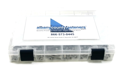 Stainless steel sheet metal screw assortment kits offer a variety of sizes in a convenient and durable compartment box.
