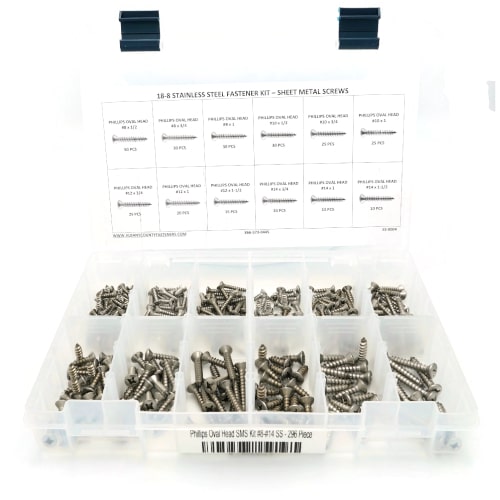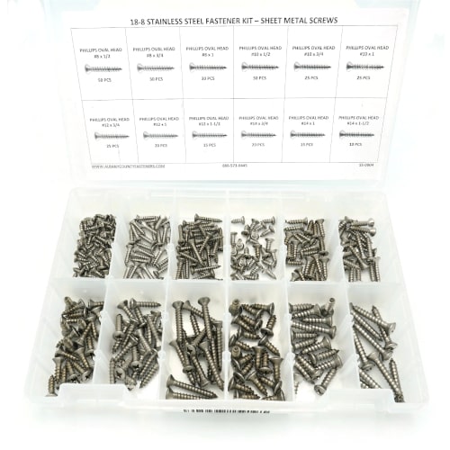 296 Piece Stainless Steel Phillips Oval Head Sheet Metal Screw Kit Easy Reorder Sheet