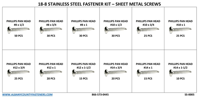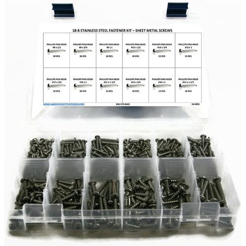 - 18-8 Stainless steel Phillips pan head sheet metal screw kit