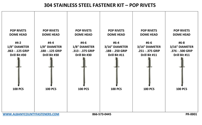 601 Piece Stainless Steel Pop Rivet Kit Easy Reorder Sheet