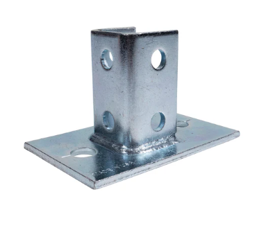Rectangular Strut Post Base, 8 Hole, For Unistrut Channel, 6" x 4" x 3-1/2" Leg, Electro Galvanized Steel