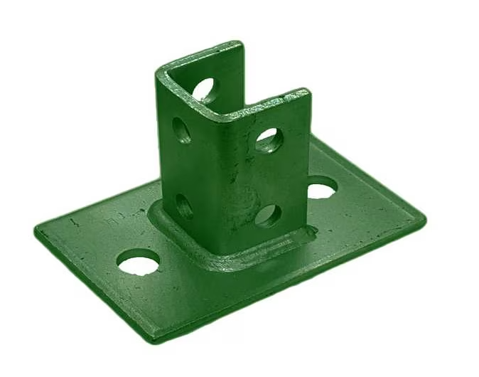 Rectangular Strut Post Base, 8 Hole, For Unistrut Channel, 6" x 4" x 3-1/2" Leg, Green Powder Coated Steel
