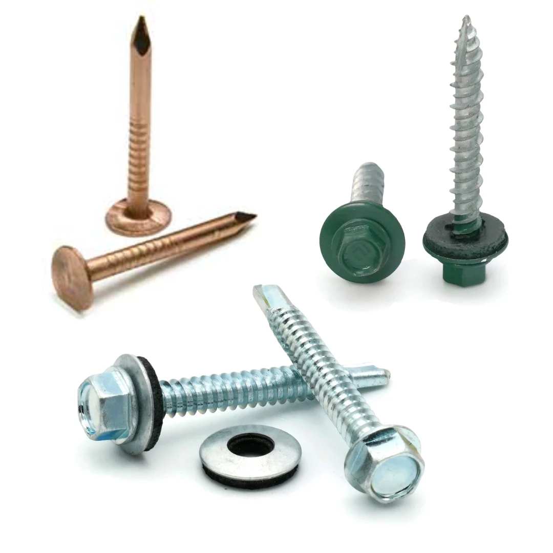 - Roofing Screws – Self-sealing washers for metal roofing and siding.