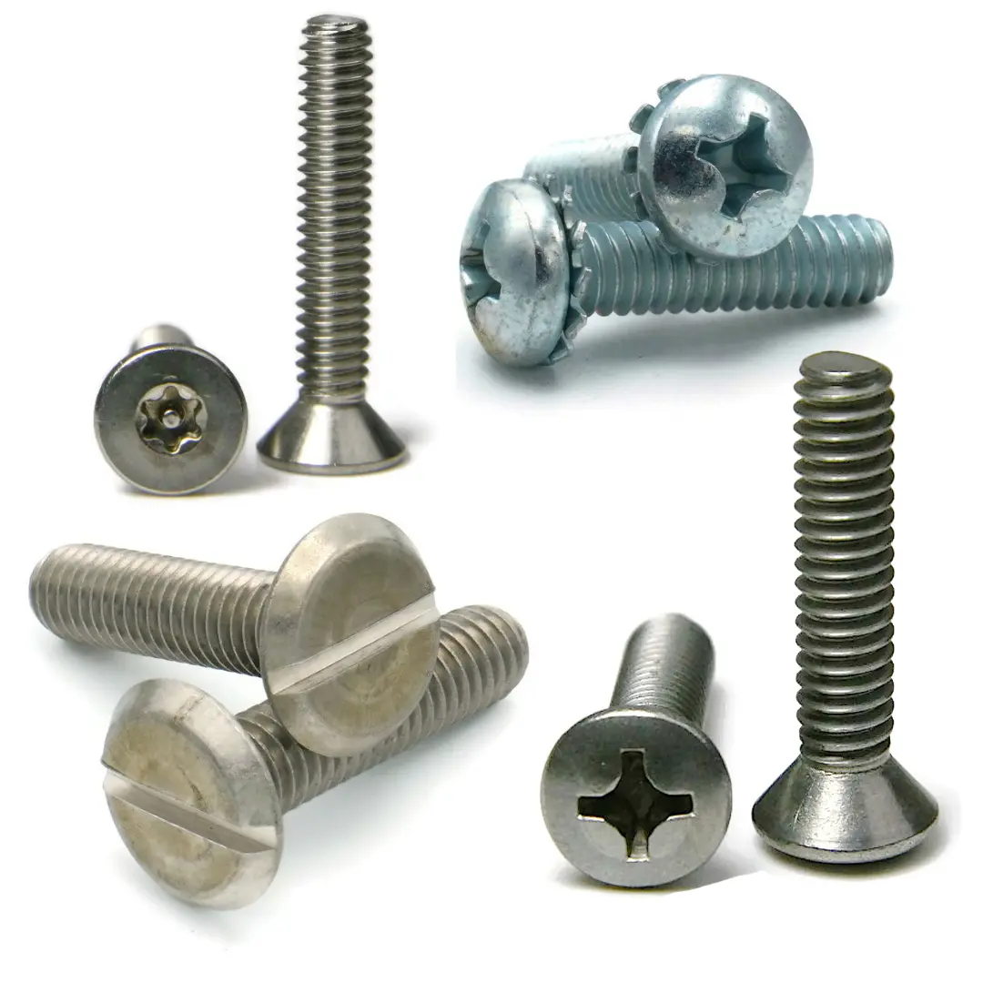 - Machine Screws – Uniform machine threads for tapped holes or nuts; pan, flat, button, and socket heads.