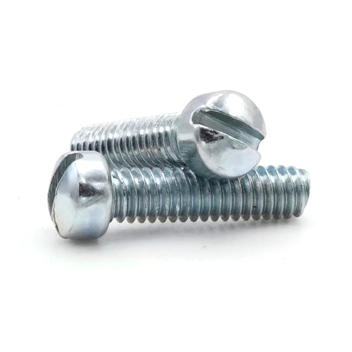 #8-32 Slotted drive fillister head machine screws are available in zinc plated steel.