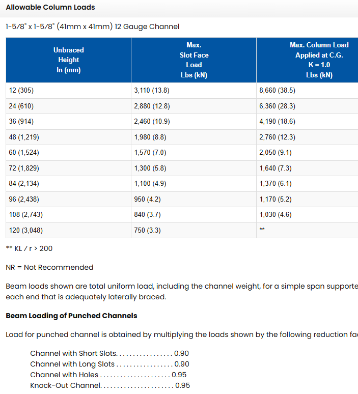 1-5⁄8" x 1-5⁄8" (41mm x 41mm) 12 Gauge Channel - BEAM LOAD