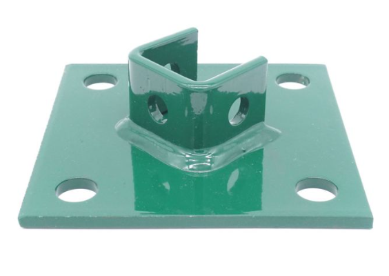 Square Strut Post Base Angled Short, For Unistrut Channel, 7 Hole, 6" x 6" x 1-5/8" Leg, Green Powder Coated Steel