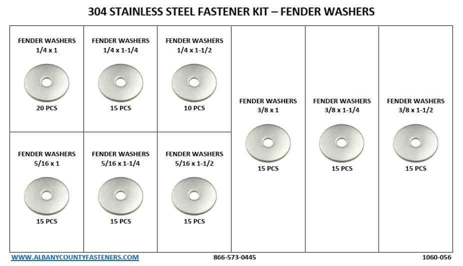 136 Piece Stainless Steel Fender Washer Kit Easy Reorder Sheet