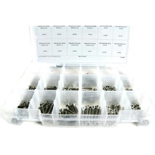Kit Assortment, Machine Screws with Nuts, Phillips Flat Head, Stainless Steel 18-8, 512 Pieces