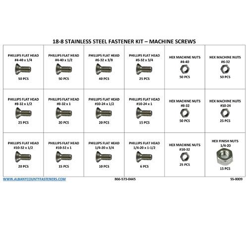 Stainless steel Phillips flat head machine screw kits bring the convenience of having a range of sizes and having the matching nut readily available. All organized into a simple and durable plastic kit. A machine screw is a term commonly associated with screws of smaller sizes.