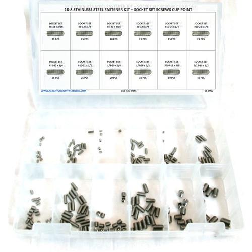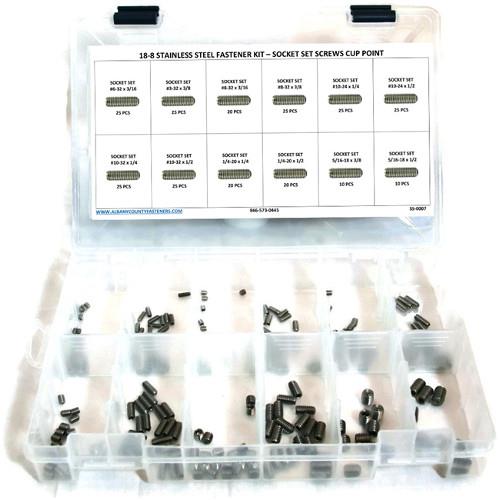 Kit Assortment, Socket Set Screws, Cup Point, Stainless Steel 18-8, 256 Pieces