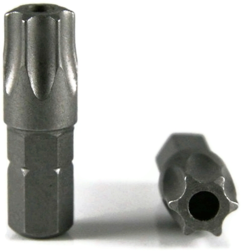 Star with Pin, also known as Torx® with pin security drive, can only be driven with security bits and is used to prevent tampering and theft. Security Screws in this variety are characterized by the 6 lobe, or star drive, with a central pin. The pin provides additional tamper resistance by preventing conventional screwdrivers and grabbing devices from tampering with the original installation. This drive style has several industry names, including Torx, star drive, six lobe, and pin-in screws.