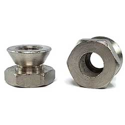 Tri Groove security nuts feature a tapered diameter, making the nuts resistant to gripping devices. Security nuts are installed using a special Tri Groove socket, which grips the indentations along the outside of the fastener to turn the nut along a thread. Tri Groove nuts are also referred to as T Groove, Trident Drive and Coned Trident Drive Nuts are tamper resistant.