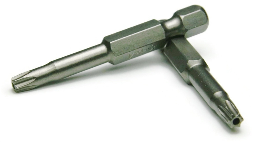 T20 Torx With Pin Security Power Bit used to install and remove Torx security screws with a standard power drill