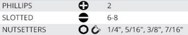 - NUTSETTERS: 1/4", 5/16", 3/8", 7/16"