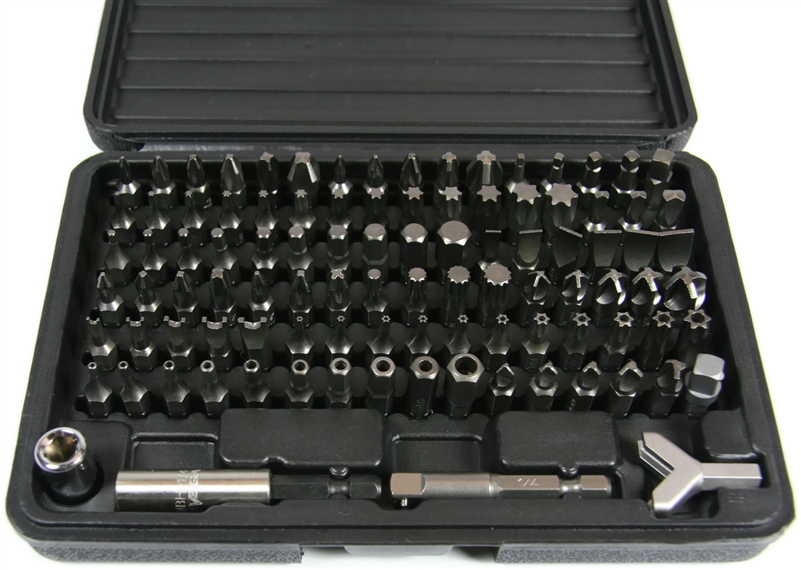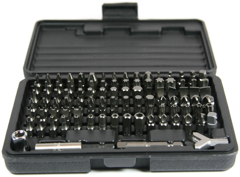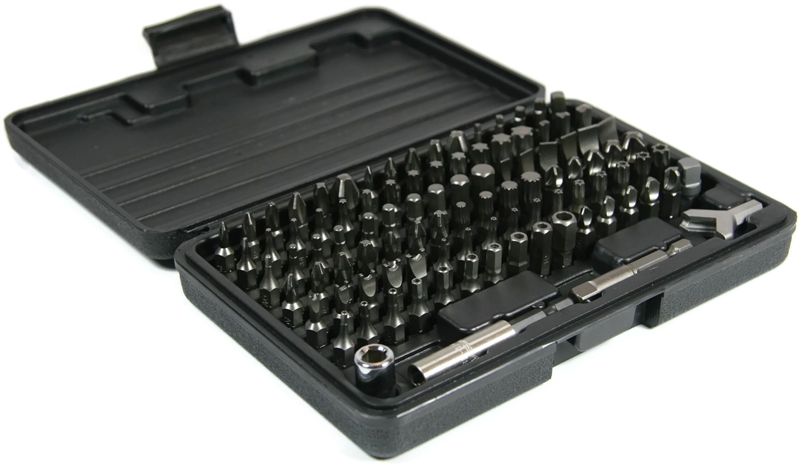 Quality 100 Piece Master Screwdriver Bit Set with standard and security bits. Comprehensive set of common and hard to find bits for industrial and professional construction applications. Made from S2 modified shock resistant steel for professional performance and durability. Proprietary precision CNC machined tips for excellent fit in fastener recess. Durable plastic storage case.