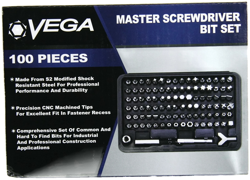 100 Piece Master Screwdriver Bit Set - Standard and Security - VHS100A