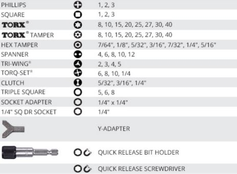 - SPANNER BITS: 4, 6, 8, 10, 12