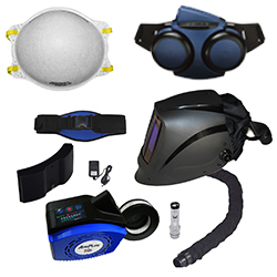 Use respiratory protection when ventilation cannot keep fume levels below limits, when welding on coated/galvanized materials, or in confined spaces. Powered Air-Purifying Respirators (PAPR) provide filtered, positive-pressure air under a compatible helmet or hood; half-mask respirators fit under certain hoods—verify compatibility.