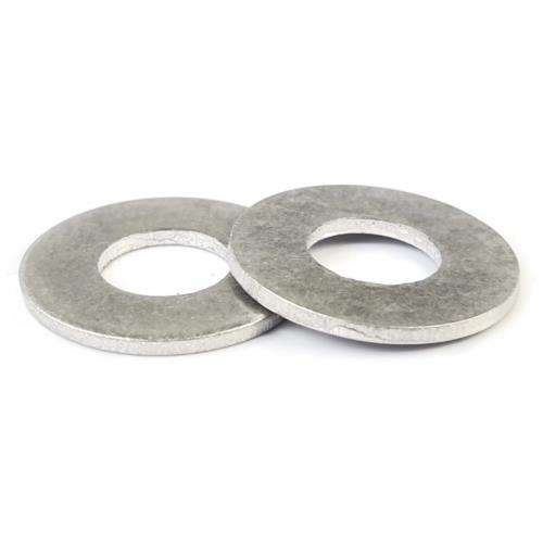 Aluminum flat washers are corrosion resistant, lightweight, and non-magnetic. Our aluminum washers are made of 2024-T4 Aluminum Alloy which is a high strength aluminum alloy with good fatigue resistence and strength-to-weight ratio. Note that, while aluminum 2024-T4 is resistant to atmospheric corrosion, it is not as corrosive resistant as stainless steel and is ill suited for marine enviroments.