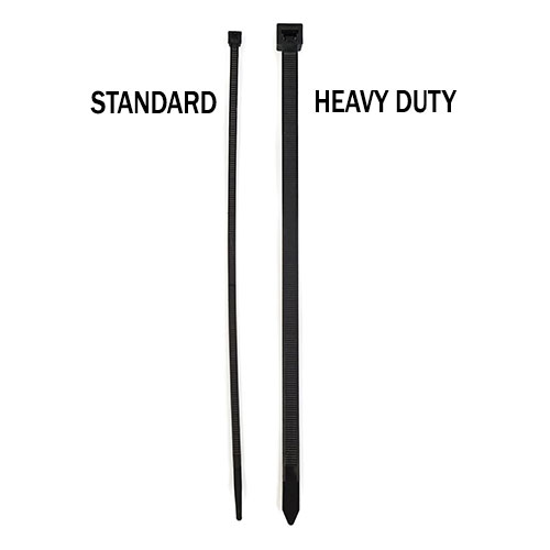 A Heavy Duty Cable Tie, also referred to as a Zip Tie, are designed for keeping heavier wire bundles and cables neat and out of the way. Heavy Duty Cable Ties are used for larger, more demanding applications including ducts and pipes. Black Zip Ties are commonly used in the Electrical, Plumbing, I.T. and HVAC industries to keep running cable, hoses or ducts organized.