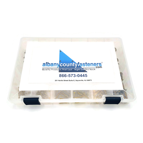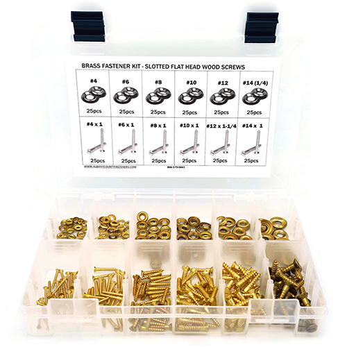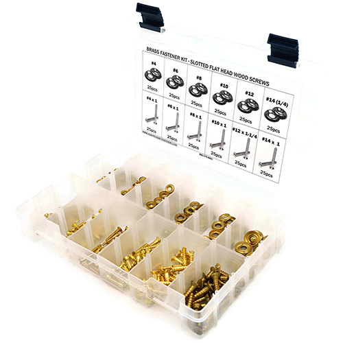 301 piece Brass Slotted Flat Head Wood Screw Kit with Cup Washers Easy Reorder Sheet