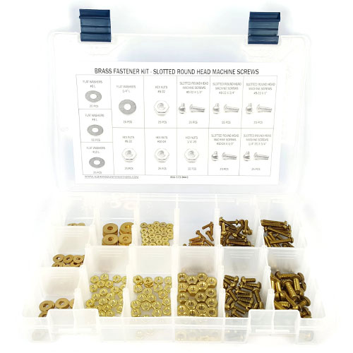 376 Piece Brass Slotted Round Head Machine Screw Kit Easy Reorder Sheet