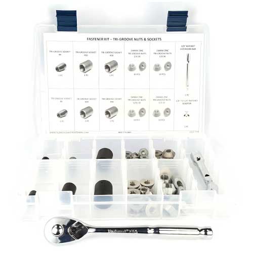 Complete Tri Groove Socket Set Kit with Zamak 5 Zinc Tamper Proof Nuts Easy Reorder Sheet