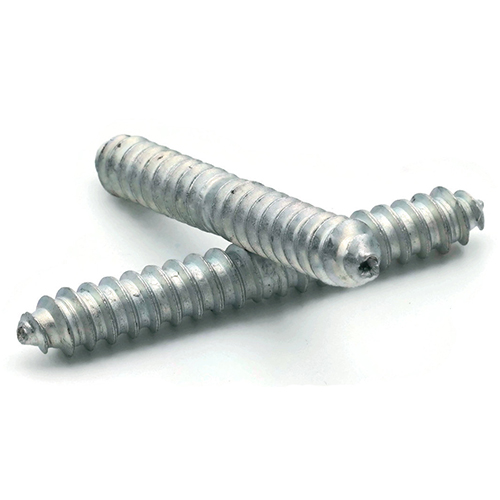 Dowel Screws are headless fasteners featuring double sided lag screw threads. Also known as wood screw studs, these fasteners are used primarily for wood to wood applications and are designed to be screwed into a pilot hole. The end of the lag thread is tapered and threaded to its tip. Dowel Screws are used for fastening two pieces of wood so as to keep them permanently in their proper relative position, usually set apart from each other.