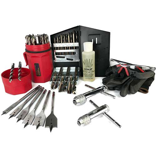 The Drill Bit Set Gift Bundle includes a variety of tools, bits and safety gear needed for drilling, tapping and more.