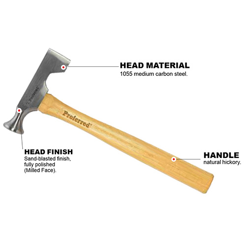 - Natural hickory handle for shock absorption and lightweight travel