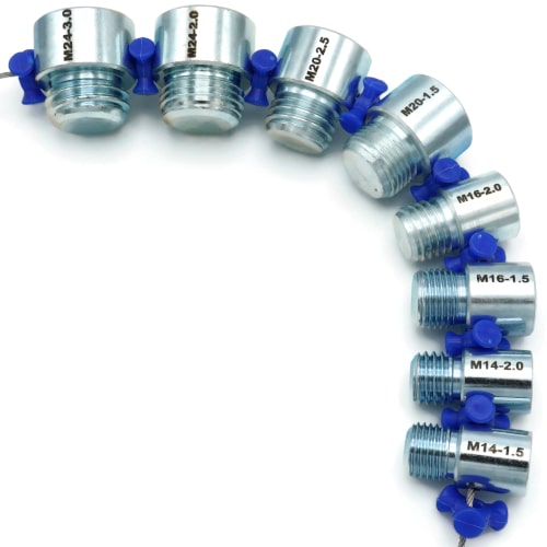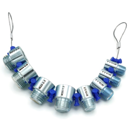 Thread gauges are used to identify size and thread pitch of nuts, bolts and screws. This gauge is specifically designed with large fasteners in mind, and contains metric sizes M14-1.5 to M24-3.0.