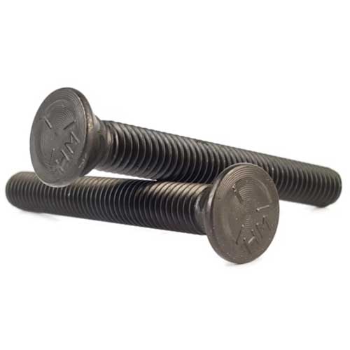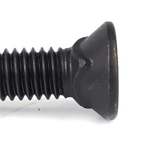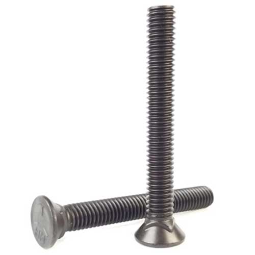 3/8"-16 Plain steel plow bolts have a non-protruding #3 flat head and the shank is topped by a short countersunk square section under the head.