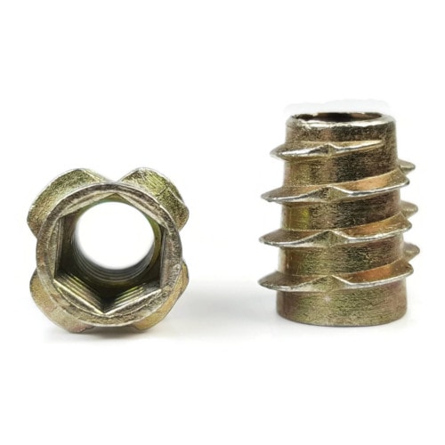 Threaded Inserts, Flush Hex Drive, Softwood, Yellow Zinc Alloy Steel, Type E, #8-32 x 0.394
