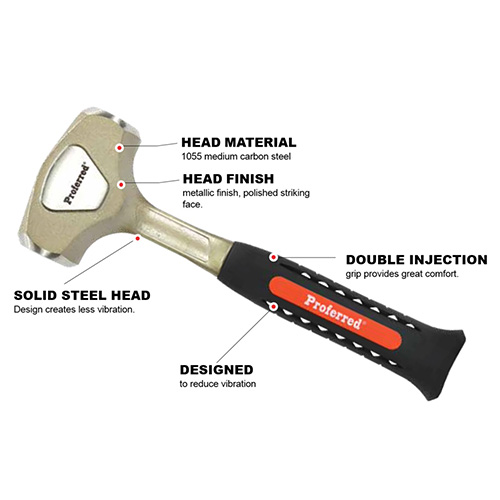 - Solid Steel Head & Handle Designed to Reduce Vibration and Recoil