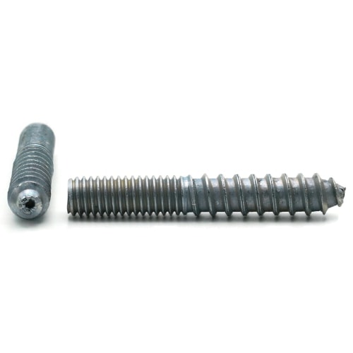 1/4"-20 Zinc plated hanger bolts are headless bolts with unified threading on one end and lag screw threading on the other. Hanger bolts are aptly named as they are used to hang things from wood. To install a hanger bolt, the lag side is screwed into a pilot hole. Then an object with a hole drilled is placed over the unified threaded portion and a washer and nut are fastened to hold the object in place.