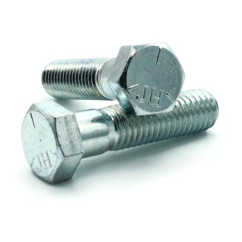 - Grade 5 Zinc hex cap screws are distinguished by three hash marks on top of the bolt's head